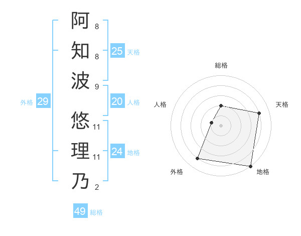 阿知波 悠理乃さんを姓名の画数から五運を鑑定