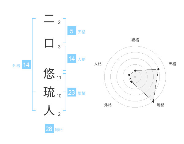 二口 悠琉人さんを姓名の画数から五運を鑑定