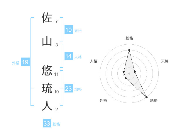 佐山 悠琉人さんを姓名の画数から五運を鑑定