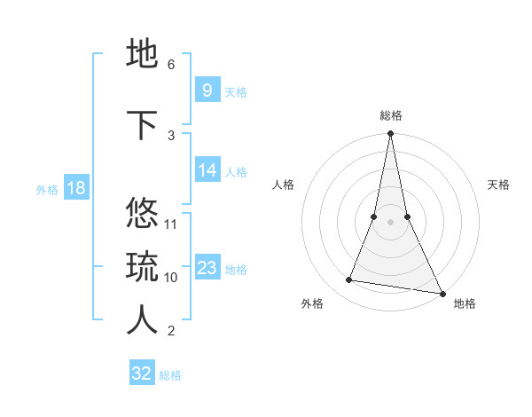 地下 悠琉人さんを姓名の画数から五運を鑑定