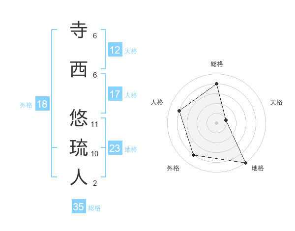 寺西 悠琉人さんの総格は35画の4点!