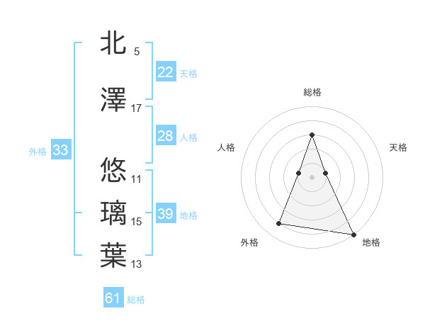 北澤 悠璃葉さんの総格は61画の3点!