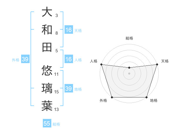 大和田 悠璃葉さんの天格は16画の5点!