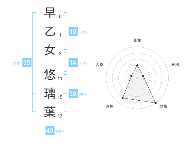 早乙女 悠璃葉さんを姓名の画数から五運を鑑定