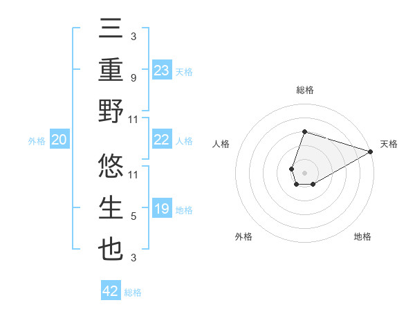 三重野 悠生也さんを姓名の画数から五運を鑑定