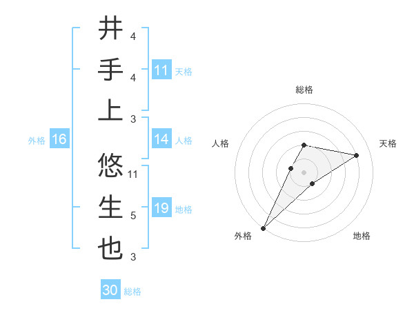 井手上 悠生也さんを姓名の画数から五運を鑑定