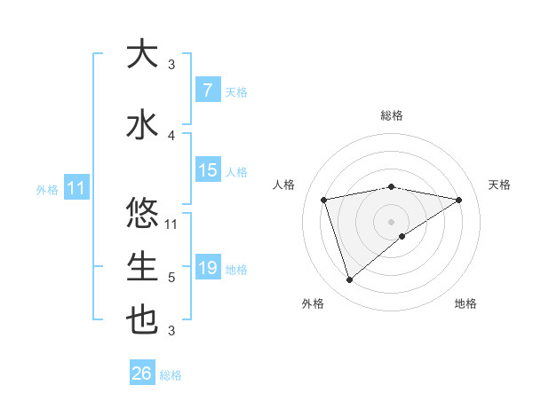大水 悠生也さんを姓名の画数から五運を鑑定