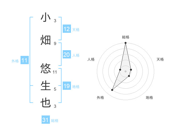 小畑 悠生也さんを姓名の画数から五運を鑑定