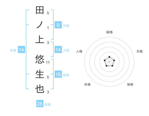 田ノ上 悠生也さんを姓名の画数から五運を鑑定