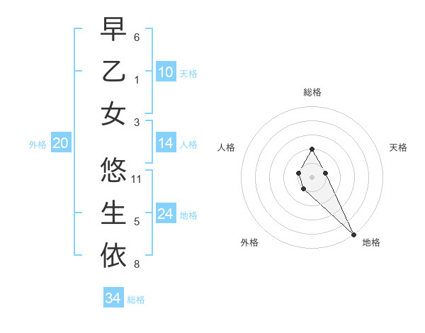 早乙女 悠生依さんを姓名の画数から五運を鑑定