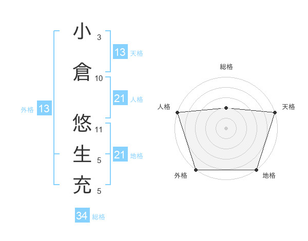 小倉 悠生充さんを姓名の画数から五運を鑑定