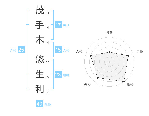 茂手木 悠生利さんの地格は23画の5点!