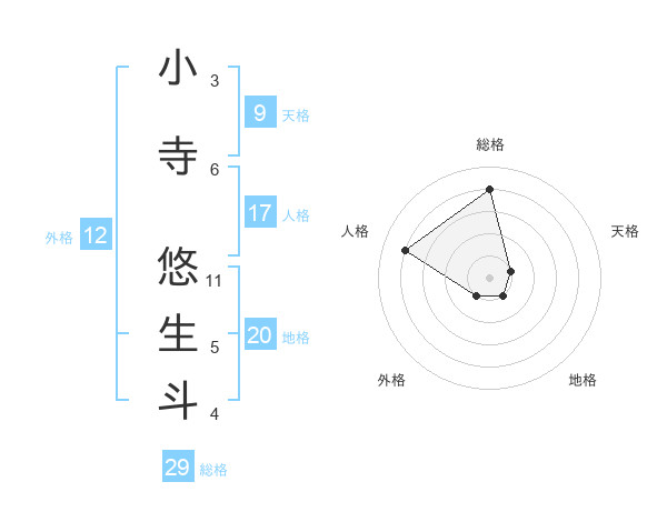 小寺 悠生斗さんを姓名の画数から五運を鑑定
