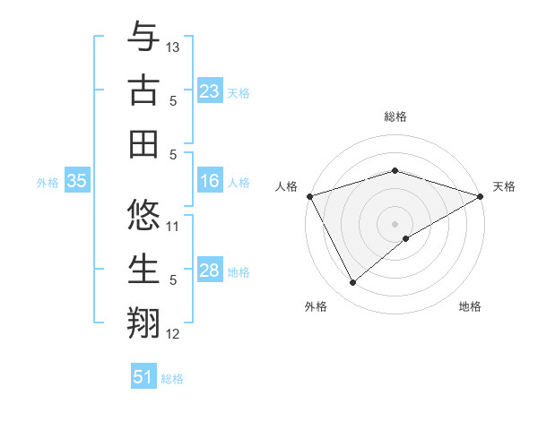 与古田 悠生翔さんを姓名の画数から五運を鑑定