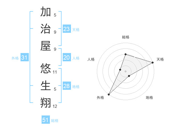 加治屋 悠生翔さんの総格は51画の3点!