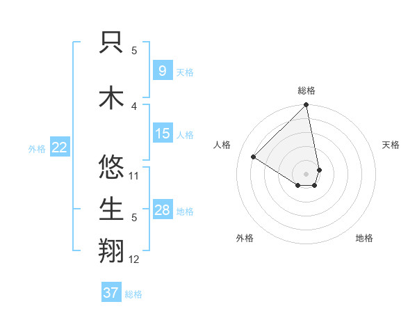 只木 悠生翔さんの総格は37画の5点!
