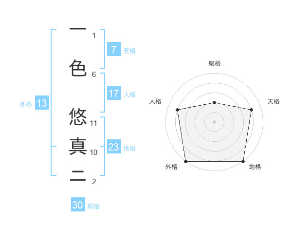 一色 悠真ニさんの外格は13画の5点!