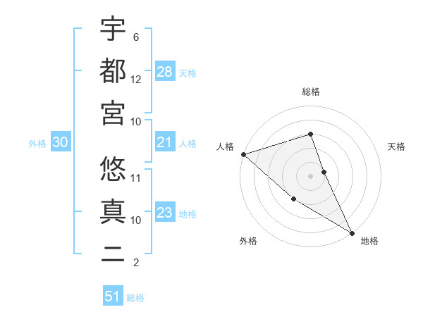 宇都宮 悠真ニさんを姓名の画数から五運を鑑定