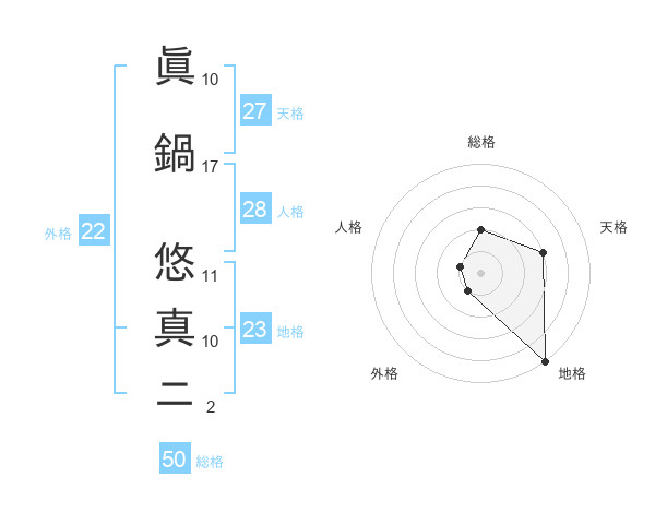 眞鍋 悠真ニさんの名前の鑑定結果は!