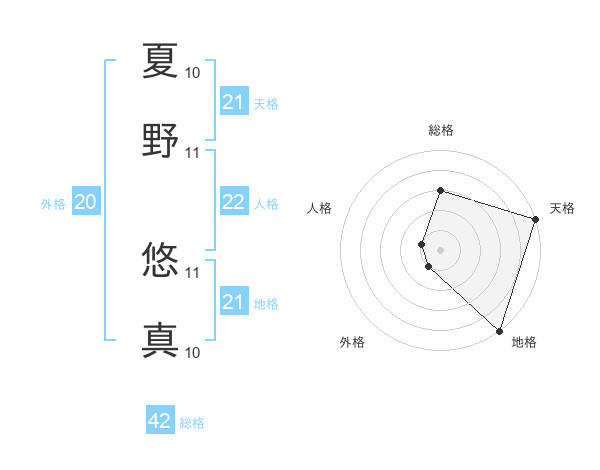 夏野 悠真さんの天格は21画の5点!
