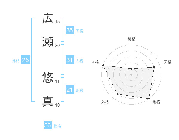 広瀬 悠真さんを姓名の画数から五運を鑑定