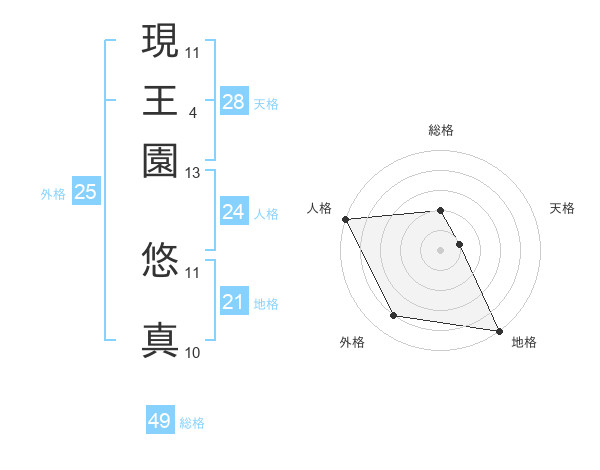 現王園 悠真さんを姓名の画数から五運を鑑定