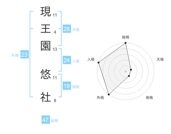 現王園 悠社さんを姓名の画数から五運を鑑定
