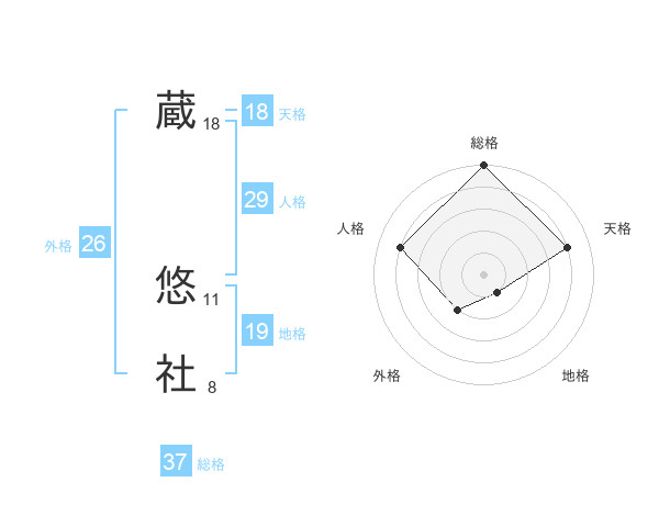 蔵 悠社さんの天格は18画の4点!