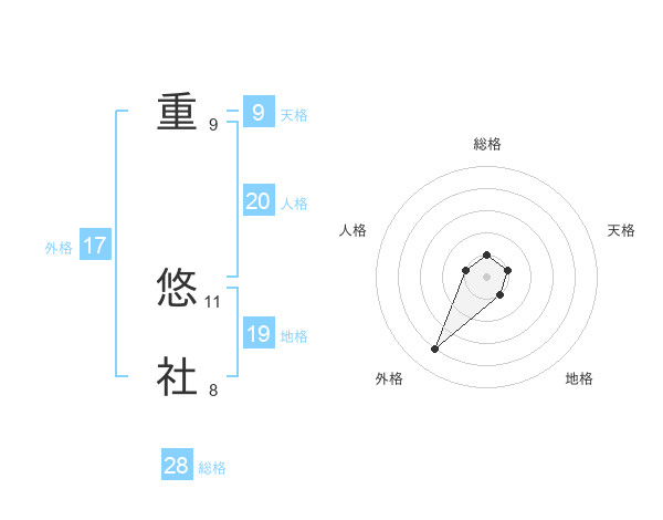 重 悠社さんの総格は28画の1点!