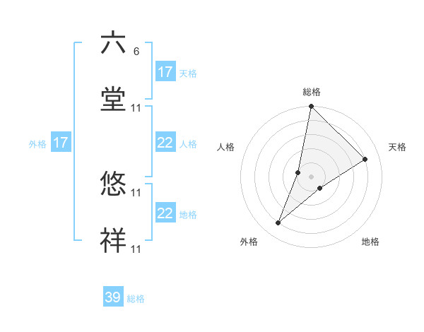 六堂 悠祥さんの総格は39画の5点!