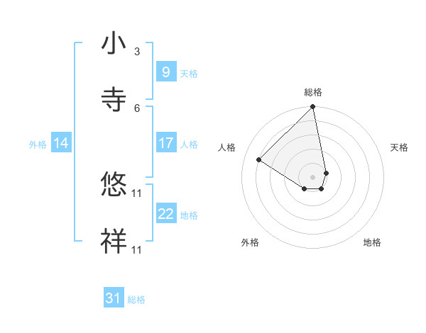小寺 悠祥さんを姓名の画数から五運を鑑定