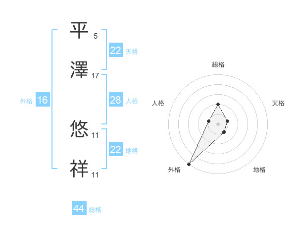 平澤 悠祥さんの総格は44画の2点!