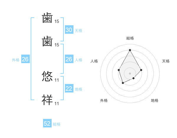 歯歯 悠祥さんを姓名の画数から五運を鑑定