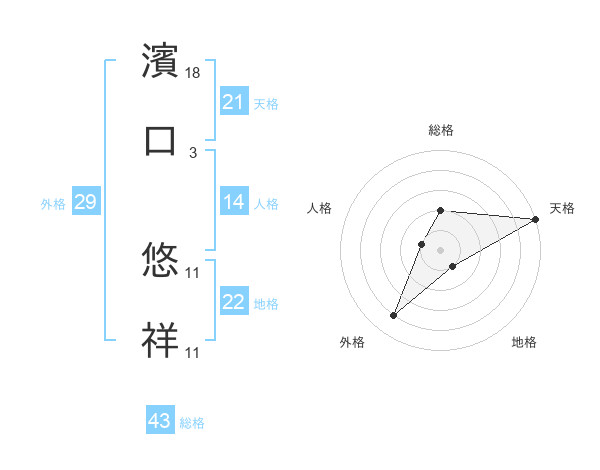 濱口 悠祥さんの天格は21画の5点!