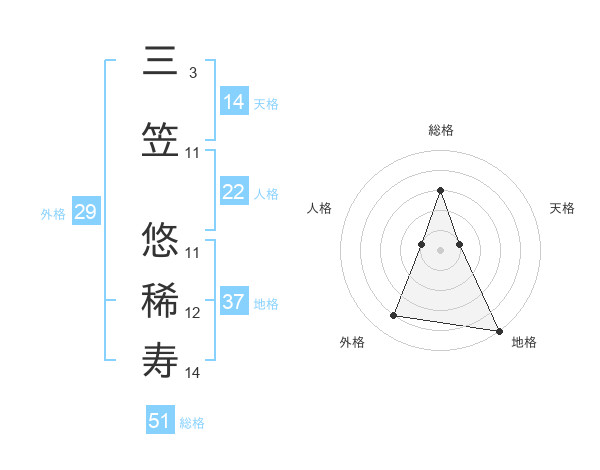 三笠 悠稀寿さんを姓名の画数から五運を鑑定