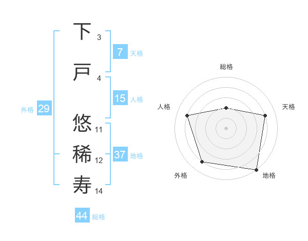 下戸 悠稀寿さんの総格は44画の2点!