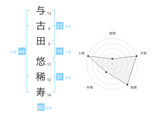 与古田 悠稀寿さんを姓名の画数から五運を鑑定