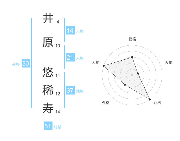 井原 悠稀寿さんを姓名の画数から五運を鑑定