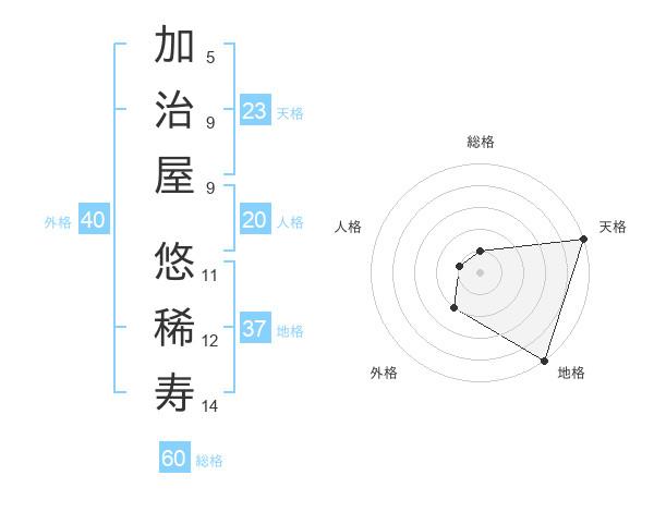加治屋 悠稀寿さんを姓名の画数から五運を鑑定