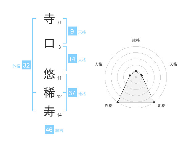 寺口 悠稀寿さんの外格は32画の5点!