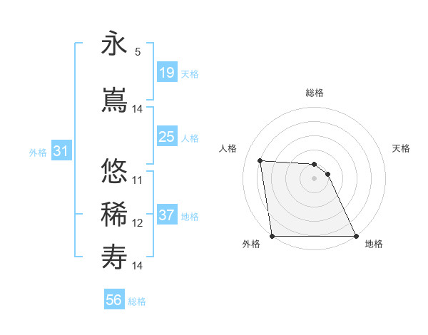 永嶌 悠稀寿さんを姓名の画数から五運を鑑定