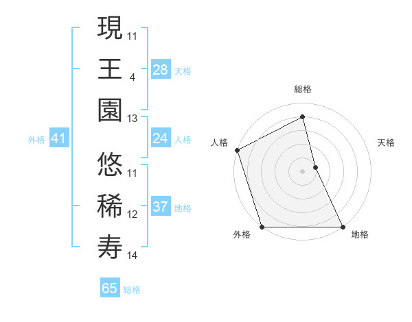 現王園 悠稀寿さんを姓名の画数から五運を鑑定