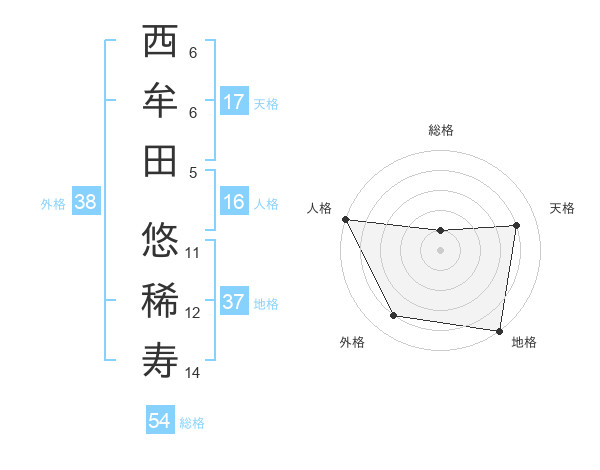 西牟田 悠稀寿さんを姓名の画数から五運を鑑定