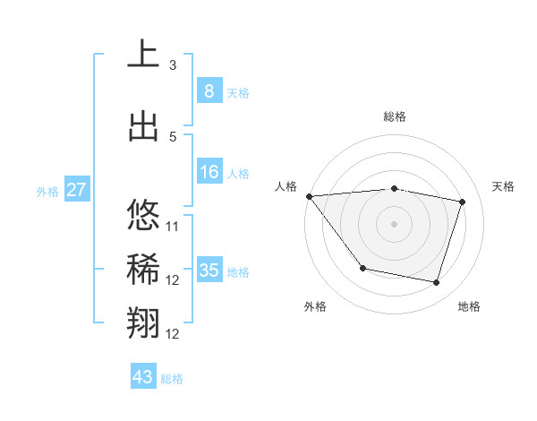 上出 悠稀翔さんの総格は43画の2点!