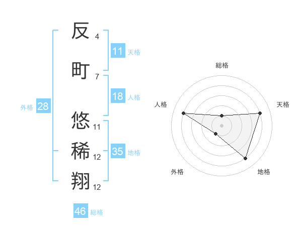 反町 悠稀翔さんの地格は35画の4点!