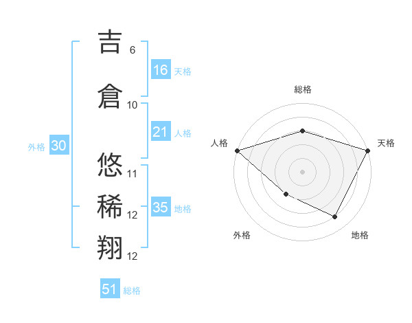 吉倉 悠稀翔さんを姓名の画数から五運を鑑定
