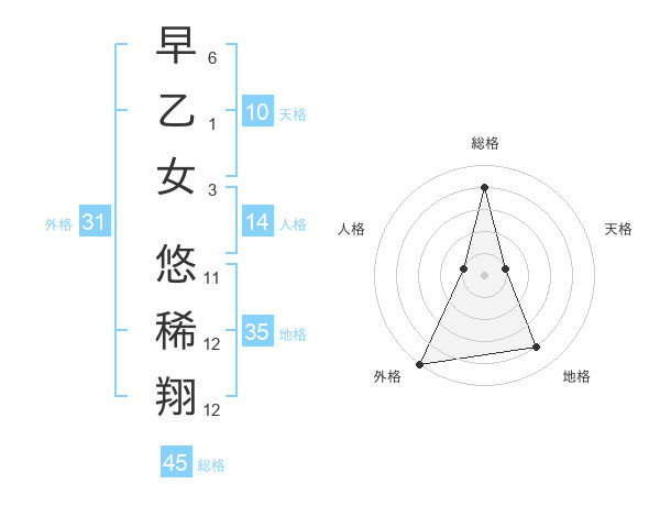 早乙女 悠稀翔さんを姓名の画数から五運を鑑定