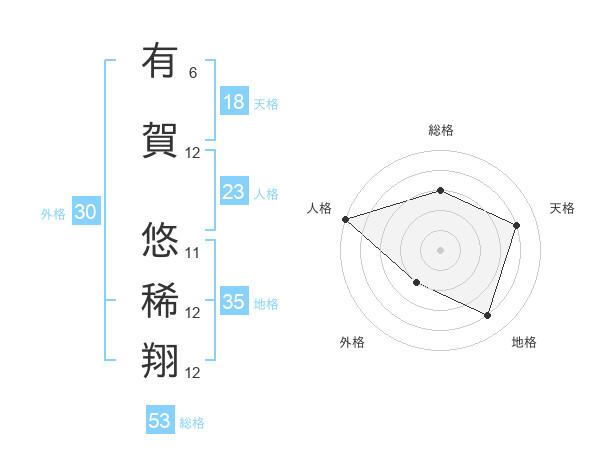 有賀 悠稀翔さんを姓名の画数から五運を鑑定