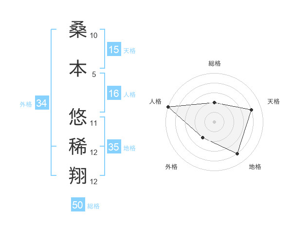 桑本 悠稀翔さんを姓名の画数から五運を鑑定
