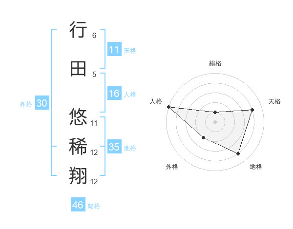 行田 悠稀翔さんの地格は35画の4点!